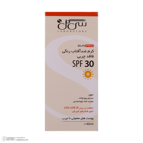 کرم ضدآفتاب رنگی سیگل، 30 SPF، مدل Sunpro، مناسب انواع پوست تنالیته رنگ روشن و حجم 40 میلیلیتر، محافظت کننده در برابر اشعه UVA