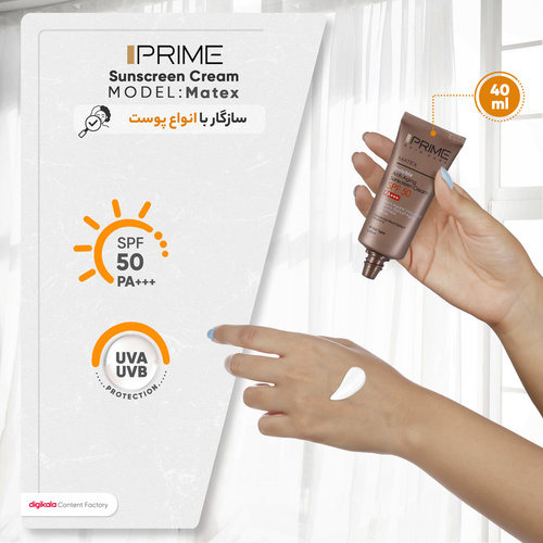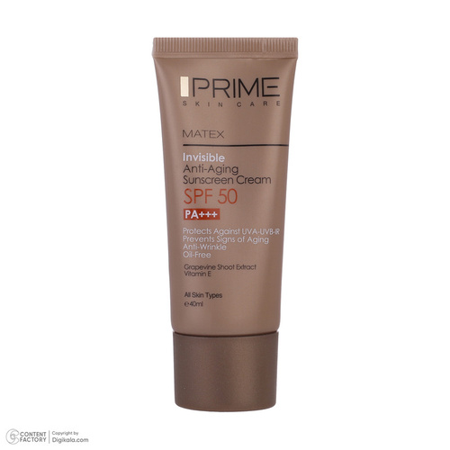 کرم ضدآفتاب و جوان‌کننده بی‌رنگ پرایم SPF50 مدل Matex مناسب انواع پوست، حجم 40 میلی‌لیتر